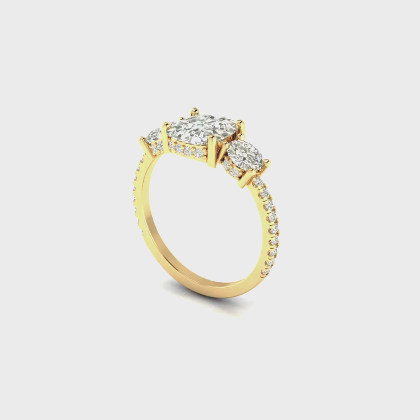 - Center: Lab-grown diamond, IGI/GIA-equivalent grading
