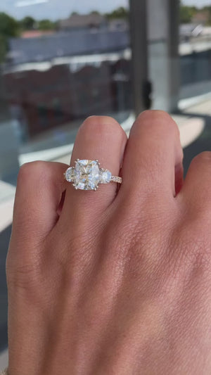 Hand-finished prongs, mirror polish, and perfect symmetry for maximum fire and scintillation. Designed to sit flush with a wedding band and feel weightless on the hand.