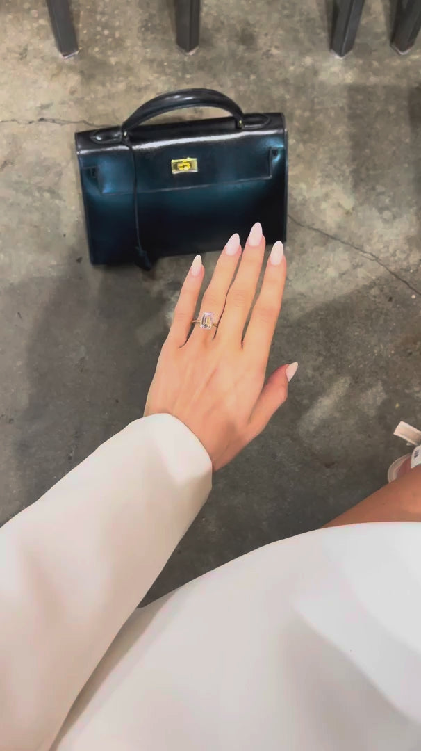 Emerald solitaires have been taking over our DMs — and it’s easy to see why. This 4.1 carat (E, VS1) lab diamond emerald is showcased in our Harper setting, complete with an invisible halo for a subtle hint of pavé sparkle. Crafted in two-tone 14k white and yellow gold, it gives that perfect “floating” illusion — timeless, yet strikingly modern.